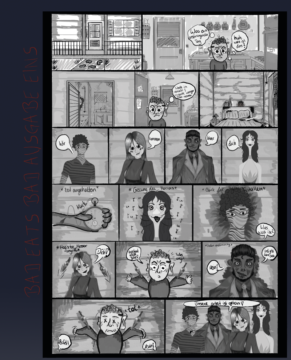 Bad Eats Bad ist ein Horror-Comic-Projekt über vier Charaktere, die aufgrund ihres Aussehens und ihrer Fähigkeiten keinen Platz in der Gesellschaft finden.